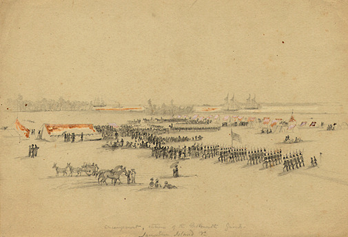 - Encampment, entrance of the Portsmouth guards,Jamestown Island Va.
