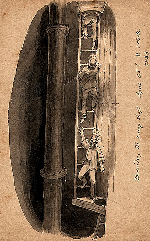 Descending the pump shaft April 25th 1856 8:o clock
