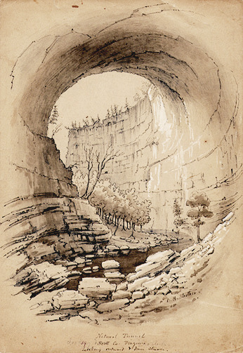 - Natural Tunnel Scott Co. Virginia. Looking outward and down stream