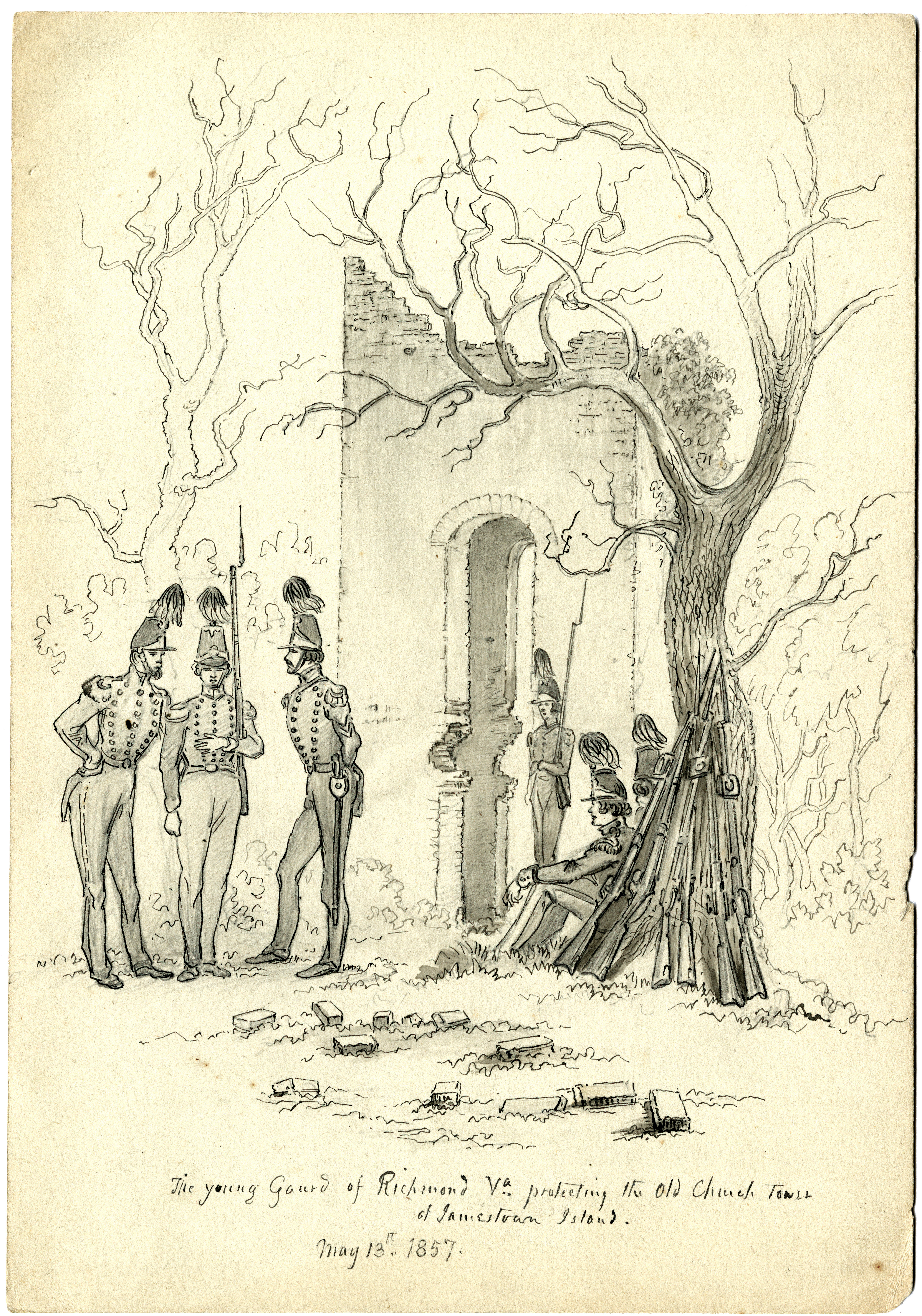 Young Guard of Richond Va. protecting the old Church Tower of Jamestown Island