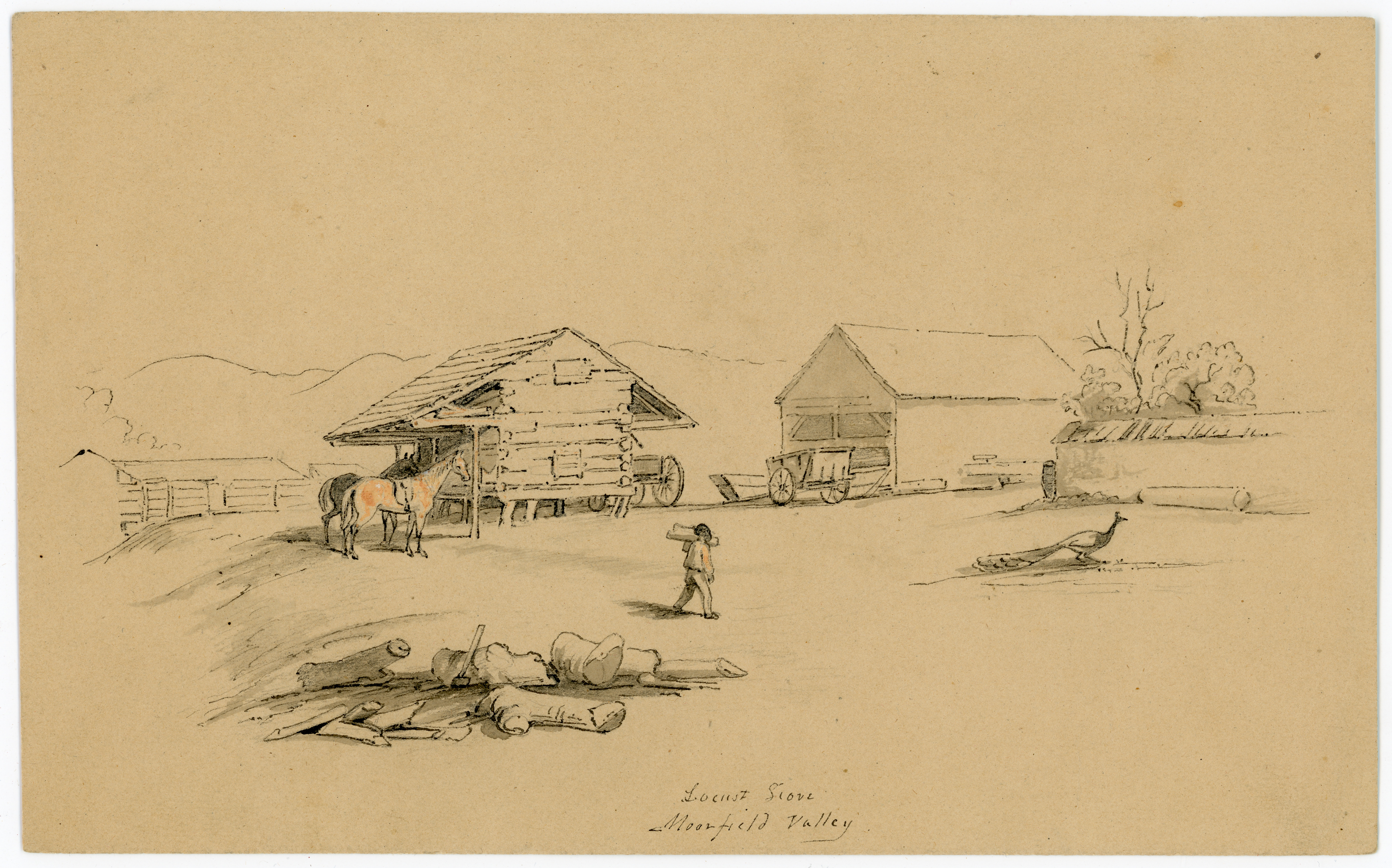 - Pen and ink wash, some peach coloring