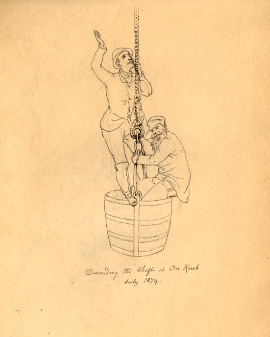 Descending the Shaft at Ore Knob July 1874.
