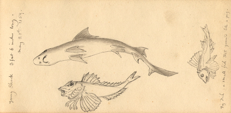- Young Shark 3 feet 6 inches long/ Pigfish - a small fish that grunts like a pig